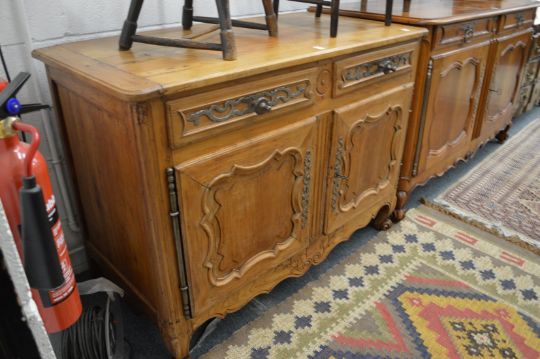 A 19th century French fruit wood sideboard with two drawers and two panelled cupboard doors.