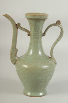 A CHINESE CELADON CRACKLE GLAZE EWER, 24.5cm high.