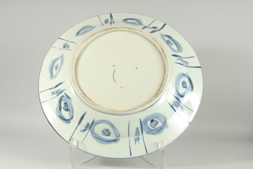 A LARGE CHINESE EXPORT BLUE AND WHITE PORCELAIN 'KRAAK' CHARGER, 44cm diameter.