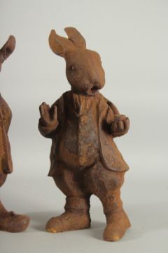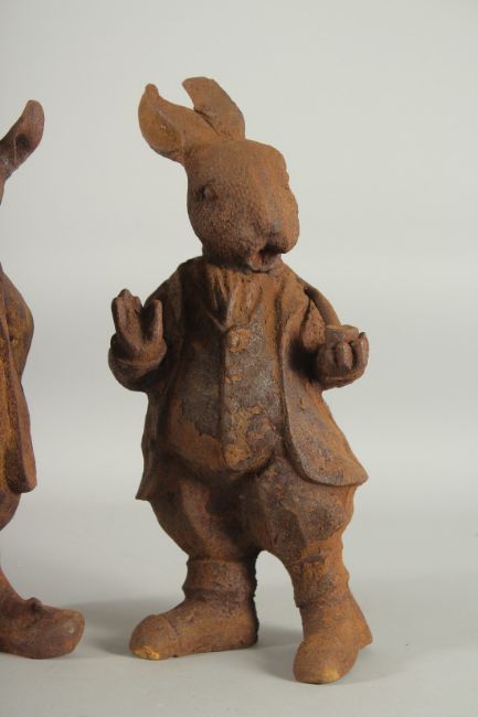 A PAIR OF CAST IRON BEATRIX POTTER FIGURES.