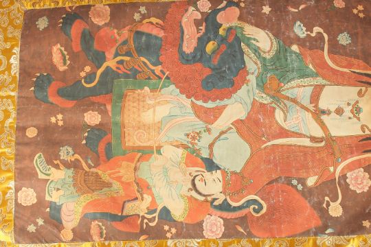 A TIBETAN THANKA on silk.