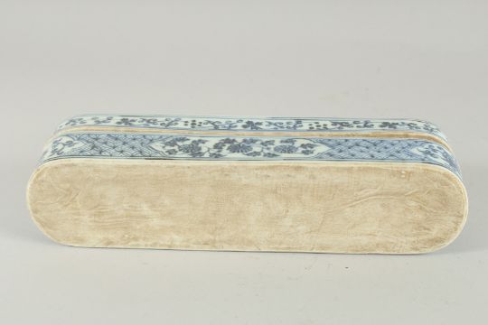 A CHINESE BLUE AND WHITE PORCELAIN PEN BOX.