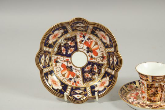 TRUMPET SHAPED DEMI-TASSEE, PAIR OF COFFEE CUPS AND SAUCERS with high handles. a demi -tassee coffee can and saucer a dish and a bowl .
