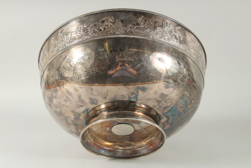 THE EQUESTRIAN CIRCULAR SILVER PLATED PUNCH BOWL.