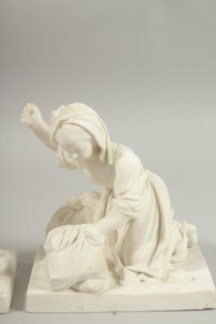 SEVRES BISCUIT PORCELAIN FIGURES OF LE TAILLEUR de PIERRES and LA BLANCHISSEUSE.