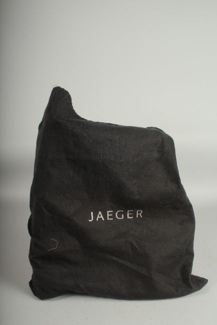 A LARGE JAEGER BLACK LEATHER BAG with short handles.