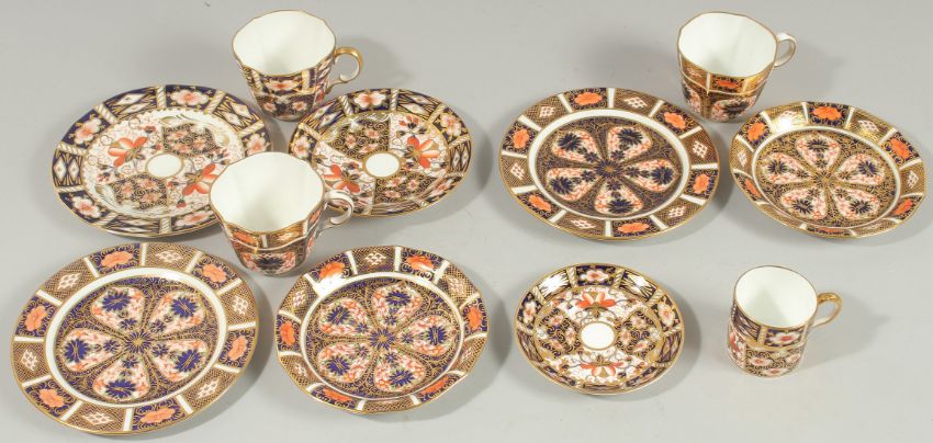 Pattern 1128: 2 coffee cups, saucers, side plates, a coffee cup, saucer and side plate in pattern 2451, and a demi-tasse coffee can and saucer in pattern 2451.