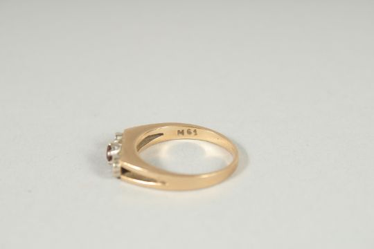 A 9CT GOLD THREE STONE DIAMOND AND SAPPHIRE RING