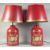 A PAIR OF RED TOLEWARE TINS as lamps with shades.