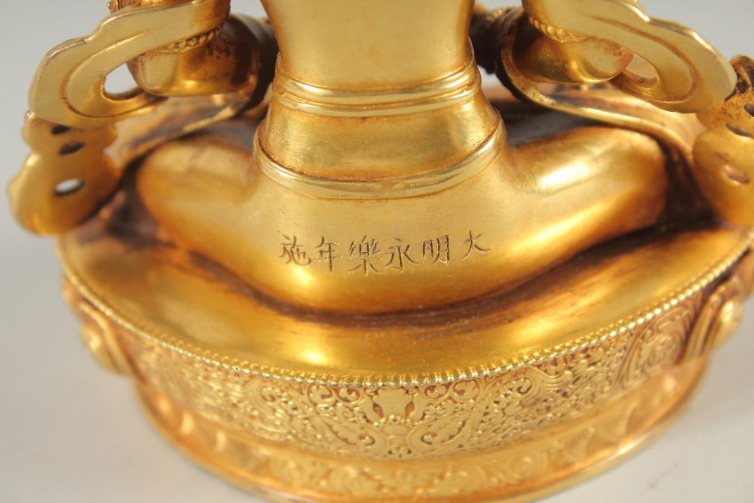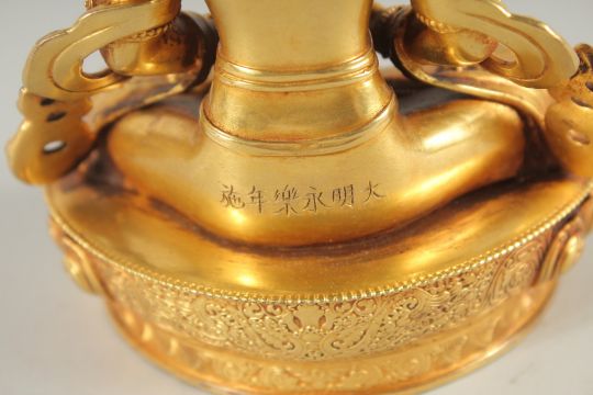 A CHINESE ALLOY FIGURE OF A SEATED DEITY.