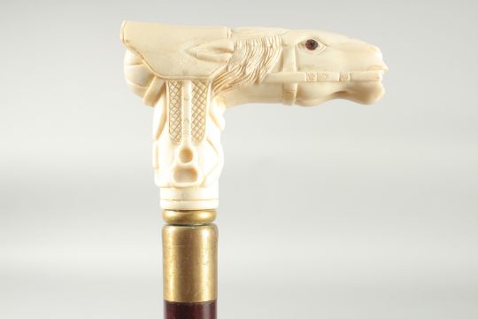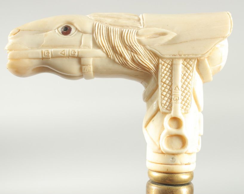 A WALKING STICK WITH CARVED BONE HANDLE 'Horse's Head'.