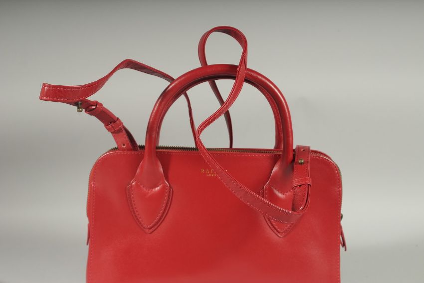 A RADLEY, LONDON, RED LEATHER BAG, with two short handles and long strap.