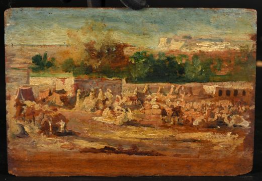 Early 20th Century, Figures and camels in an encampment, oil on panel, 5.25" x 7.5" (13 x 19cm), (unframed).