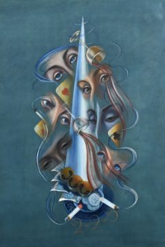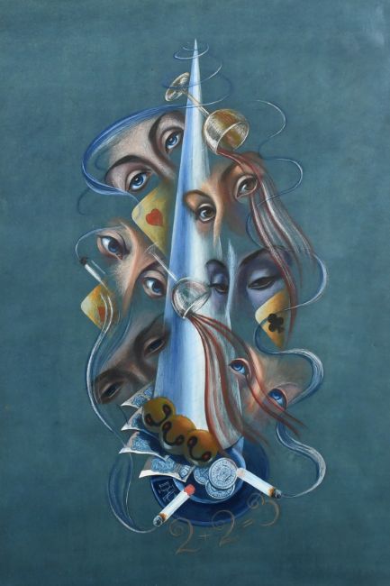 D.A. Chatterton 'Foolscap', a surrealist composition, gouache, initialled, signed and inscribed verso, 20.5" x 14.25", (52x36cm).