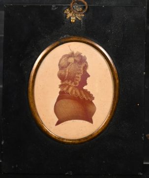 Edward Ward Foster, Circa 1820, a pair of silhouettes of a lady and gentleman, gilt heightened, each signed 'Foster Pinx 1820', 3.5" x 3" (9 x 7.5cm), oval, (2).