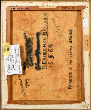 Jean Pierre Stagnaro (circa 1968), an abstract composition, oil on canvas, signed, inscribed verso, 18" x 15" (46 x 38cm).