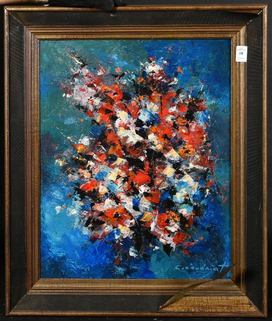 Gerard Gueguegeniat (1934-2019) French, an abstract still life, oil on board, signed, 20" x 16" (51 x 41cm).