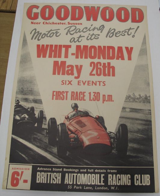 [POSTER / MOTOR RACING] an original 1958 poster, black & red for GOODWOOD motor racing, slightly trimmed at head & foot, approx. 28 x 20 inches, unframed.