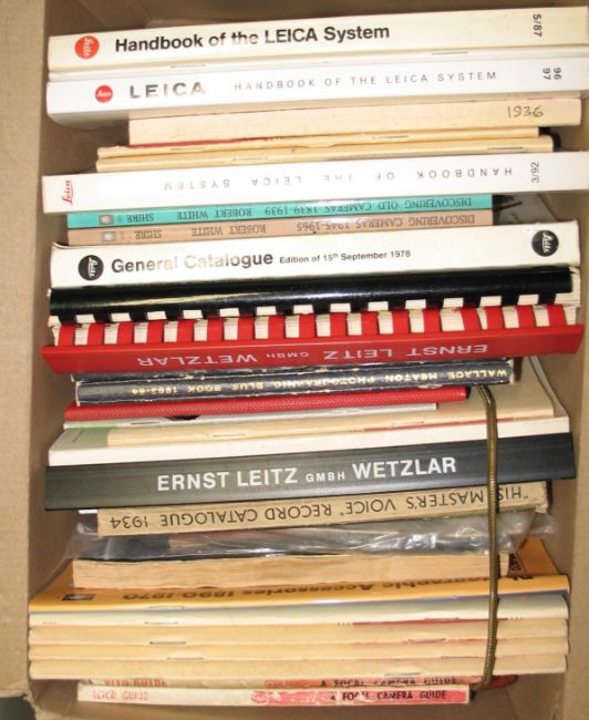 [PHOTOGRAPHY / CAMERAS] collection of LEICA handbooks, catalogues, & similar (1 box).