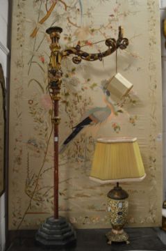 A pair of unusual Italian style carved gilt wood and gesso floor standing lamps (faults).