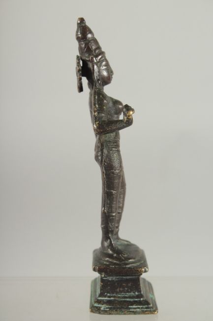 AN 18TH CENTURY SOUTH INDIAN BRONZE HINDU DEITY, 15.5cm high.