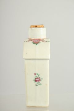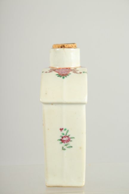 A CHINESE EXPORT PORCELAIN TEA CADDY, painted with European subject; British ship to each side, 11.5cm high.