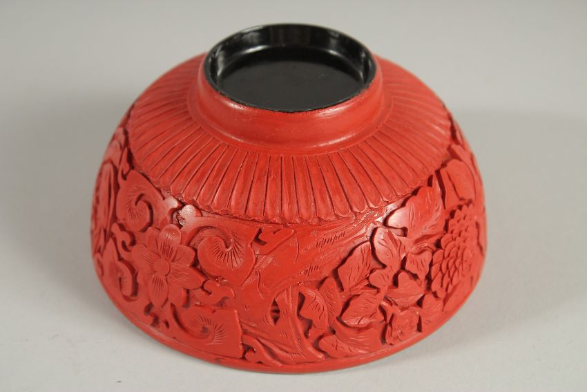 A CHINESE CINNABAR LACQUER BOWL, 12.5cm diameter.