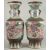 A LARGE PAIR OF CHINESE FAMILLE ROSE PORCELAIN VASES, with moulded twin handles, each painted with a procession of figures on horseback, each with character mark to base, (af), 61cm high.