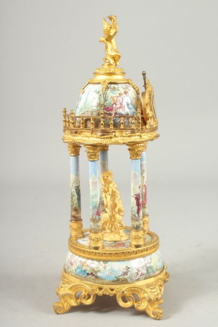 A SUPERB 19TH CENTURY VIENNA EASLE TEMPLE CLOCK with four column supports, classical figures on small clock face.
