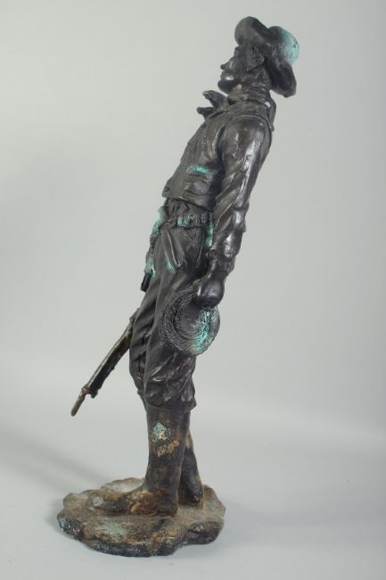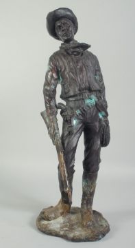 A BRONZE STANDING FIGURE OF A COWBOY.