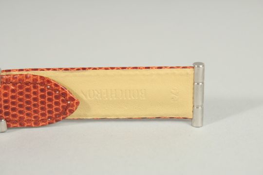 A BOUCHERON BROWN LEATHER STRAP in a Boucheron white leather case.