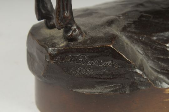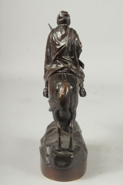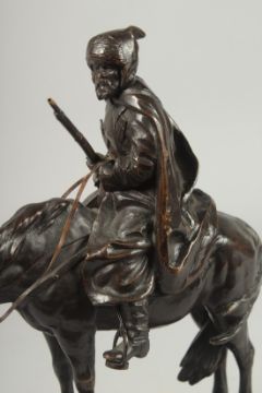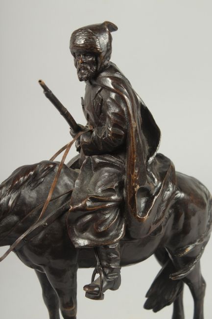A SUPERB 19TH CENTURY RUSSIAN BRONZE "A COSSACK" holding gun, on a base.
