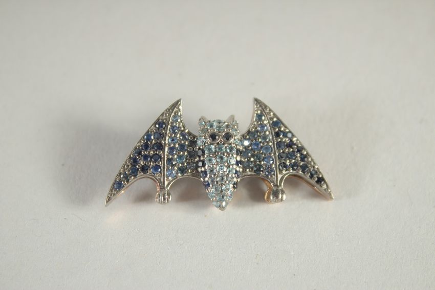 A SMALL MULTI GEM STONE BAT BROOCH.
