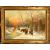Wild boar gathered along the edge of a stream in a snowy winter landscape, oil on canvas.