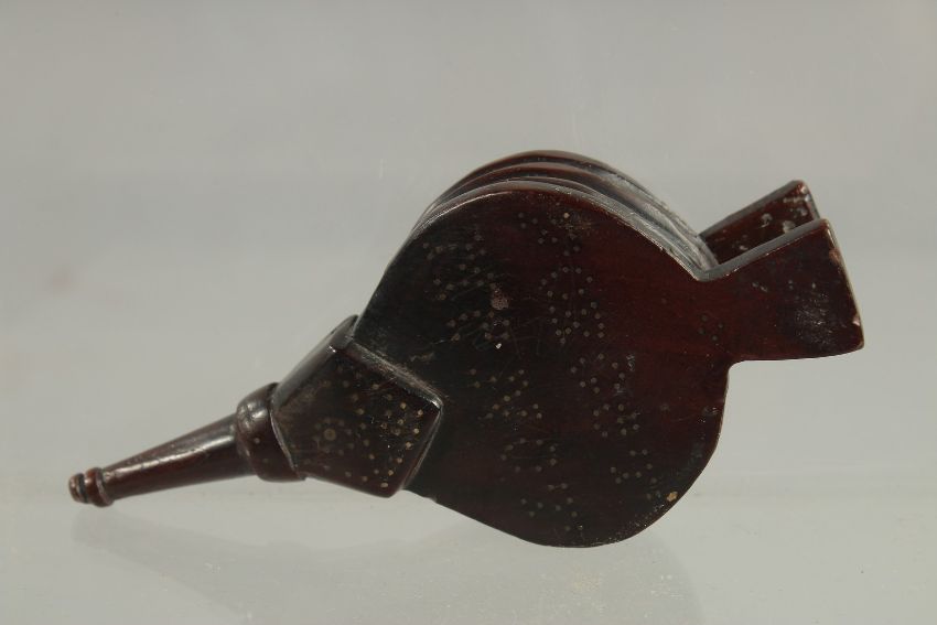 A 19TH CENTURY WELSH TREEN SNUFF BOX as a pair of bellows.