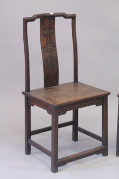 A PAIR OF CHINESE HARDWOOD CHAIRS with carved panel backs.