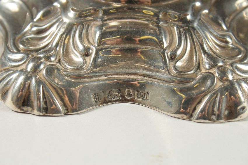 A GOOD PAIR OF WILLIAM IV SILVER SHELL CANDLESTICKS.