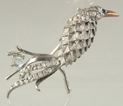 A SMALL DIAMOND AND MOONSTONE BROOCH.