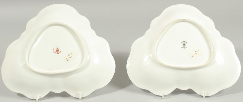 A PAIR OF ROYAL CROWN DERBY DISHES, the centres painted with sailing vessels by W.E.J. DEAN.