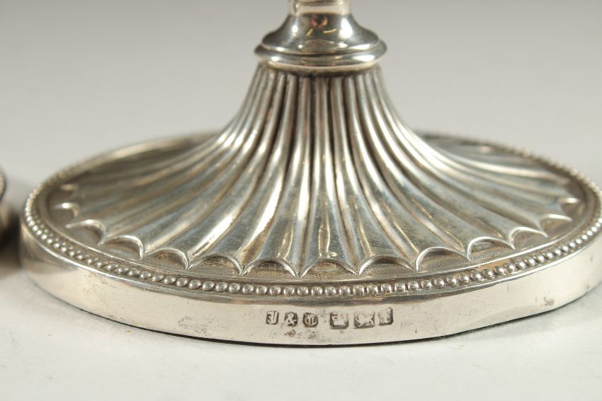 A PAIR OF SILVER CANDLESTICKS on oval bases.