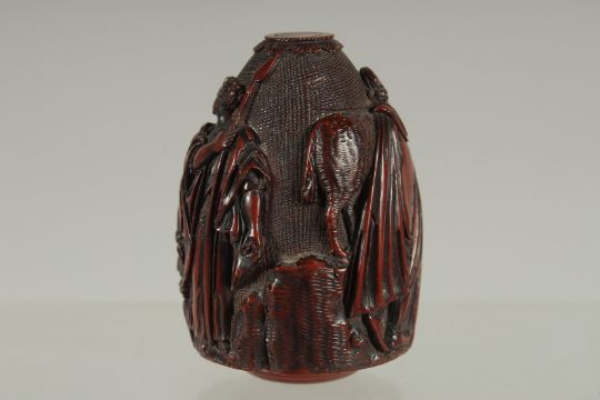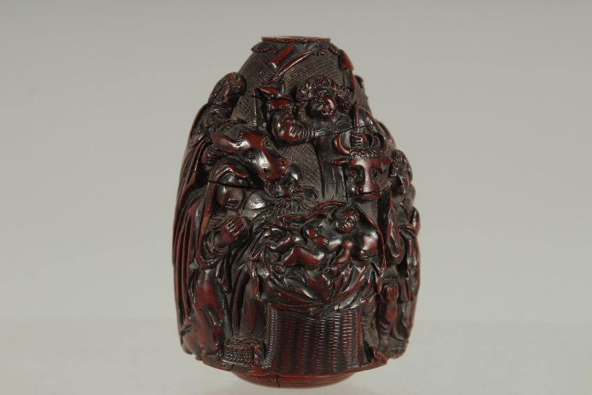 A VERY GOOD RENEISSANCE REVIVAL CARVED WOOD SNUFF BOX,