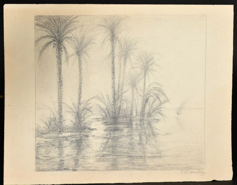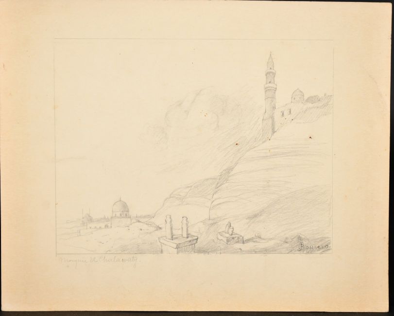 Bonello, a group of seven pencil sketch of Egyptian views, some signed and inscribed, all around 9" x 7" (23 x 18cm), all unframed, (7).
