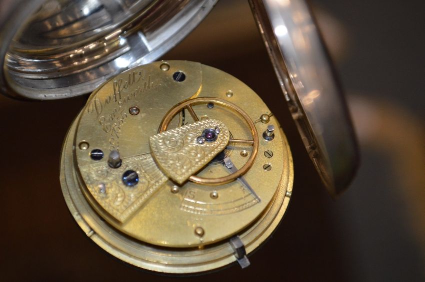 Two silver cased pocket watches and a plated pocket watch.