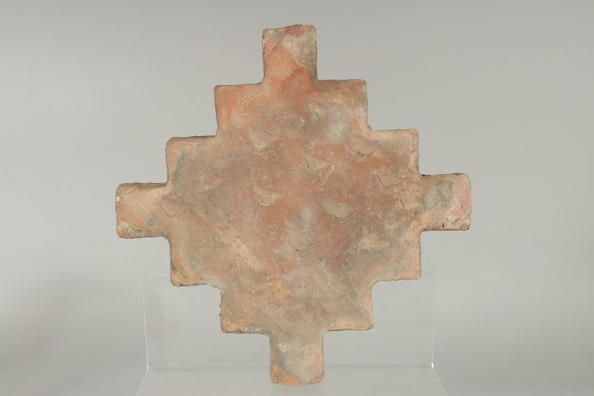 A FINE 18TH-19TH CENTURY INDIAN MULTAN GLAZED POTTERY TILE, with raised geometric design, 23cm x 23cm.