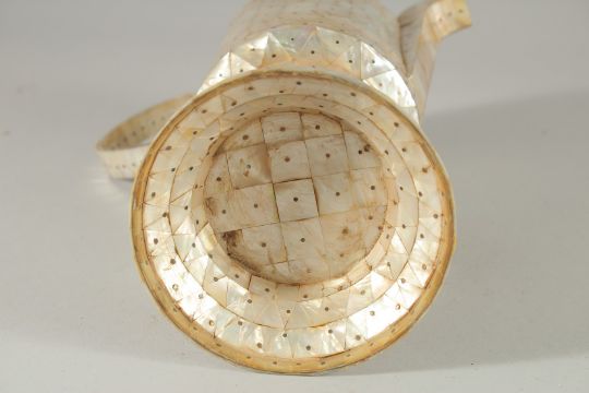 AN INDIAN GOA MOTHER OF PEARL JUG, 26.5cm high.