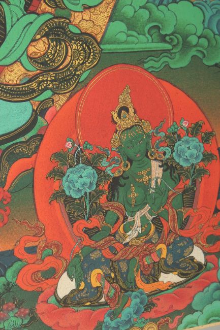 A TIBETAN THANGKA MOUNTED ON PAPER.