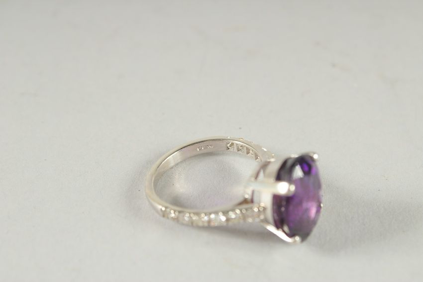 A GOOD 18CT WHITE GOLD AMETHYST AND DIAMOND RING.