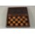 A TRAVELLING CHESS BOX AND FOLDING CHESS BOARD and chess pieces.