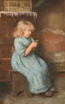 Robert Gemmell Hutchison (1855-1936) Scottish, 'Poor Birdie', pastel, signed, 14" x 21.5" (36 x 55cm).
