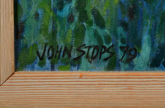 John Stops (1925-2002), a view of farm buildings beyond a field of wildflowers, oil on canvas, signed, 30" x 20" (76 x 61cm).